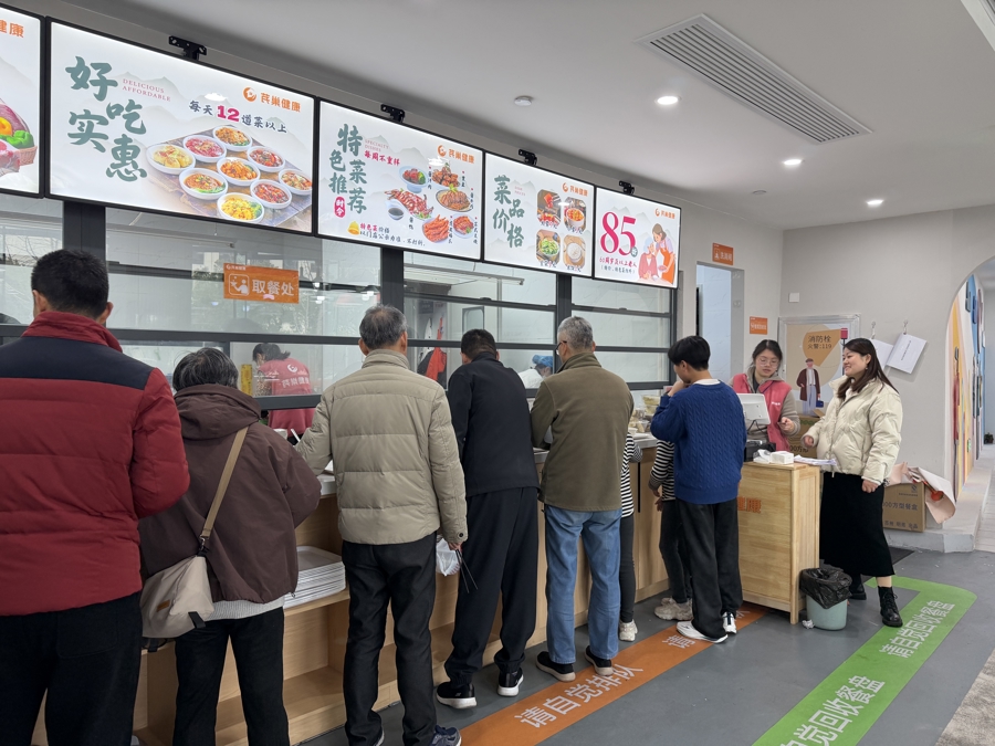 姑苏区体验中心楼下就是东谈主流量较大的社区食堂。吕倩雯 摄
