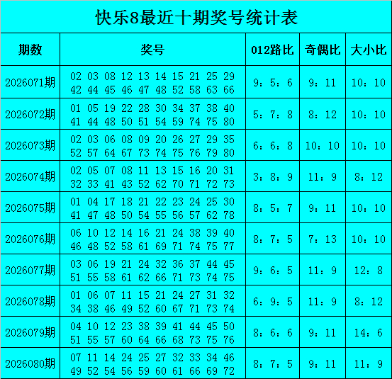 福彩安闲8第2026080期开奖回来:07 11 14 24 25 27 32 33 34 46 49 52 54 56 59 60 61 66 69 72,其中奖号012路比为8:7:5,0路号码发达活跃。
