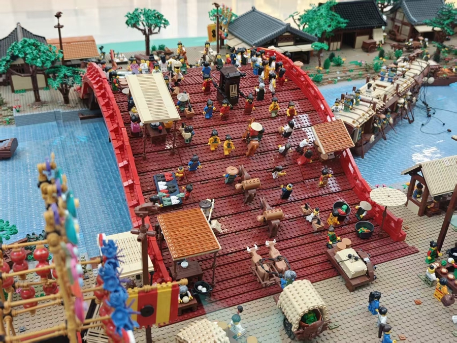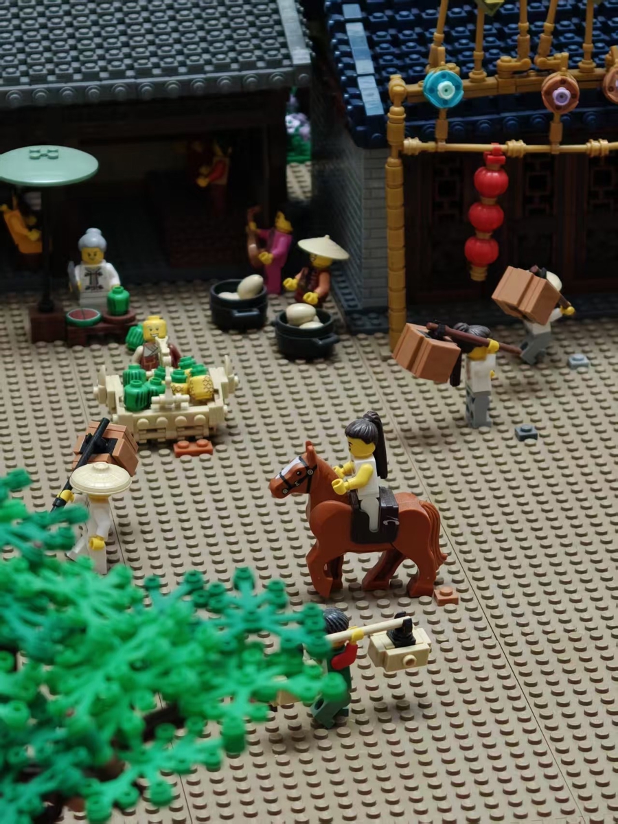“上河”之名,源自展览中枢作品——由乐高专科认证众人洪子健创作、全长26.5米的乐高实景安装《辉煌上河图》,同期寓意南京西路动作融汇贸易、东谈主气与前锋活命阵势的“河流”。这一作品于2024年创下吉尼斯寰球记载,成为其时全球最大的乐高景色模子。洪子健过甚团队耗时一年,天元优配将本来平面、单色的北宋名作转化为三维立体、颜色缤纷的乐高情境模子。他示意,但愿通过乐高积木呈现传统文化,让不雅众了解到乐高的创意地方,“积木不仅仅玩物,更不错再现城市文化与传统风貌。”