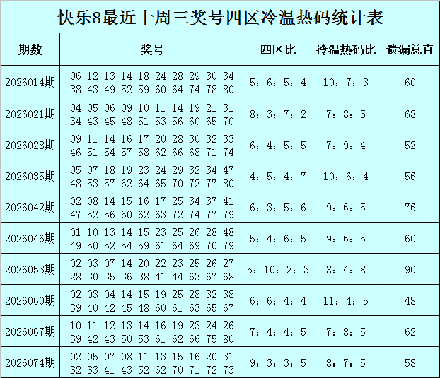福彩欢乐8第2026074期(上周三)开奖讲究:02 05 07 08 11 13 15 16 20 31 32 33 41 43 52 62 70 71 72 73,其中奖号四区比为9:3:3:5,冷温热码比为5:7:8。