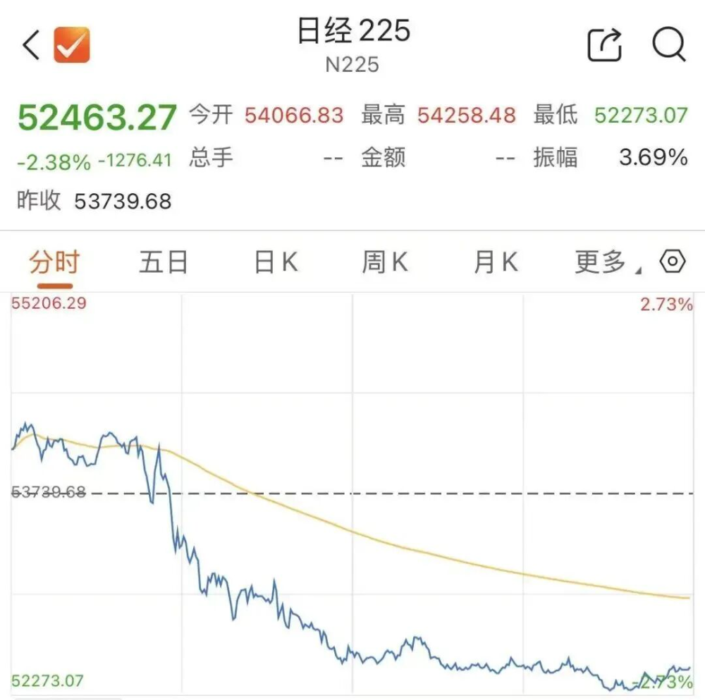 日经225指数收盘跌幅2.38%,报52463.27点。