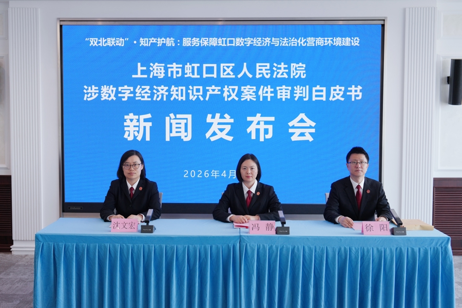 4月9日下昼,上海市虹口区东谈主民法院(以下简称虹口区东谈主民法院)在北外滩国外法律就业港召开新闻发布会,发布《“双北联动”·知产护航:就业保险虹口数字经济与法治化营商环境成立 上海市虹口区东谈主民法院涉数字经济常识产权审判白皮书》(以下简称白皮书)及典型案例,聚焦虹口区“北外滩”与“北科创”产业升级王法需求,梳理商酌企业涉数字经济常识产权纠纷案件特征,纪念王法素养,为区域“双北联动”计谋下数字经济高质料发展提供有劲法治保险。