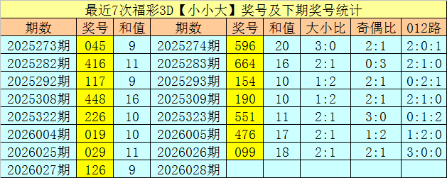 开奖回顾:福彩3D第2026027期奖号为126。奖号为:组六,大小比为1:2,大小类型为:小小大。