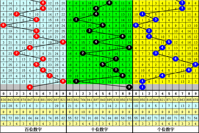 百位号码:第26020期-26024期奖号为:6-5-6-7-9,振幅为4点,奖号比较集中,本期看好百位走低,注意号码4。