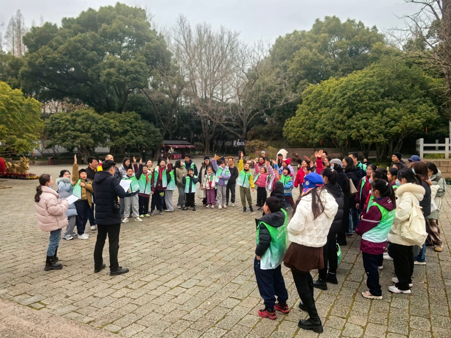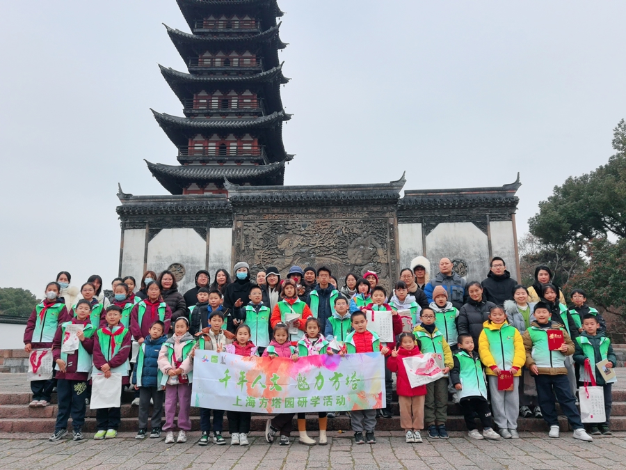 活动从一堂生动的“行前课”开始。在方塔园历史展厅内,孩子们跟随研学老师了解这座沪派名园,探究方塔的建造技艺、历史变迁和松江府城的深厚文脉。