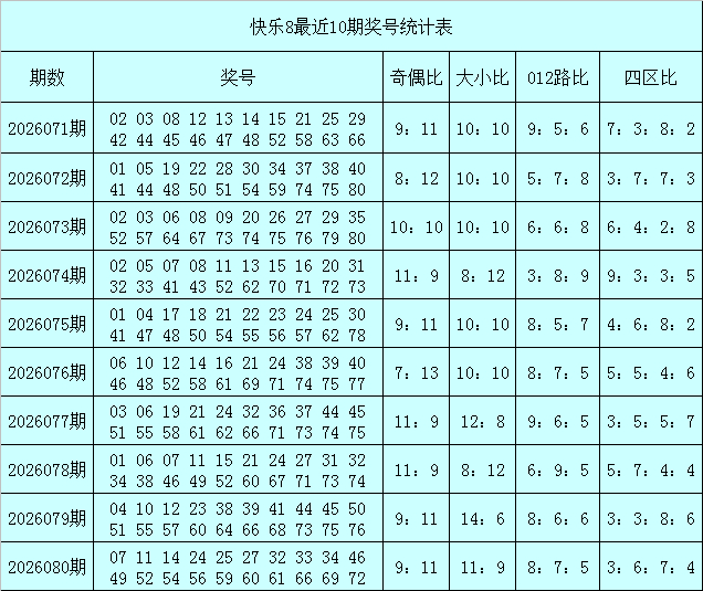 奇偶比分析:上期奖号奇偶比为9:11,偶数热出,前10期奇偶比为94:106,前5期奇数较冷开出47个,偶数走热出现53个,本期看钦慕数号码走热,关爱奇偶比12:8。