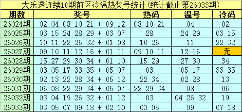 大乐透第26024期-第26033期前区奖号冷温热漫衍统计: