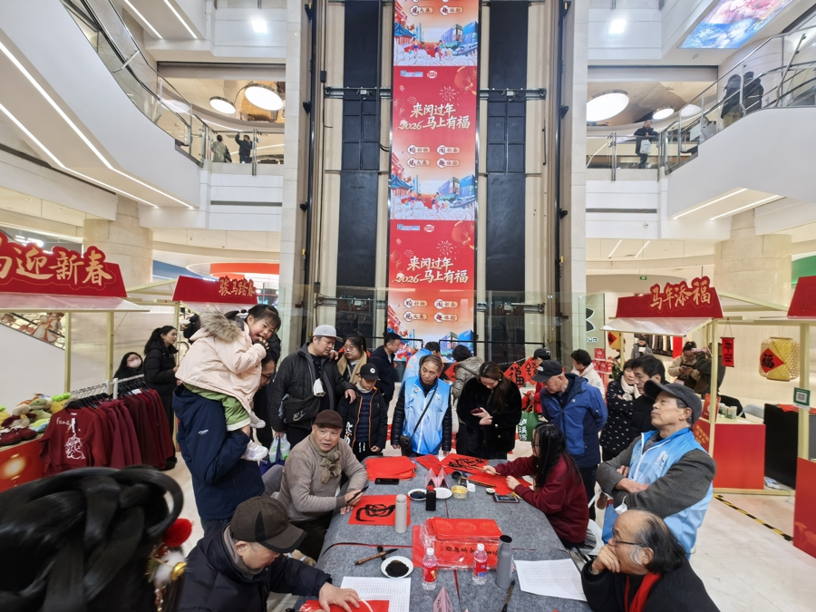 春节前夕,闵行区梅陇镇街头巷尾张灯结彩,洋溢着浓郁的年味。百联南方购物中心内人流如织,“益”马当先 幸福陇上——闵行区“我们的节日・春节”主题示范活动今天举行,标志着闵行区“春申美好生活迎新季”拉开帷幕。