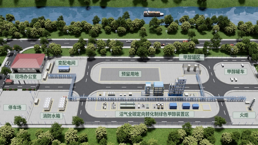 千吨级沼气全碳定向转化制绿色甲醇中试装置在上海老港建成。