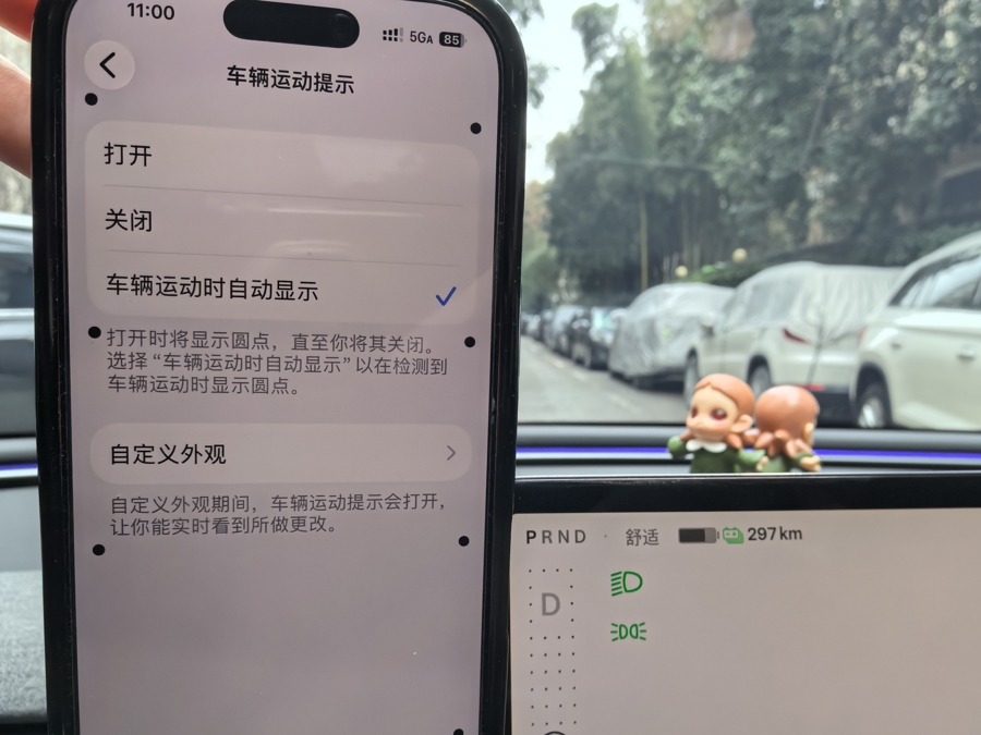 手机自带的防晕车功能中,比较常见的是“显示车辆运动提示”,开启后屏幕边缘会出现随车辆运动的动画圆点:车辆加速时圆点向下滑动,转弯时圆点向弯道的反方向移动。这些圆点会通过余光向大脑传递车辆的运动信号,让眼睛接收到“身体正在移动”的信息,完美同步内耳前庭系统的平衡感知,从根源上减少感官冲突,从而降低晕车的可能性,不少网友亲测这种方式能有效缓解头晕。