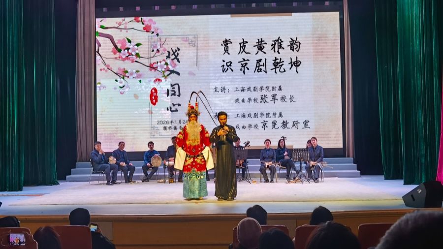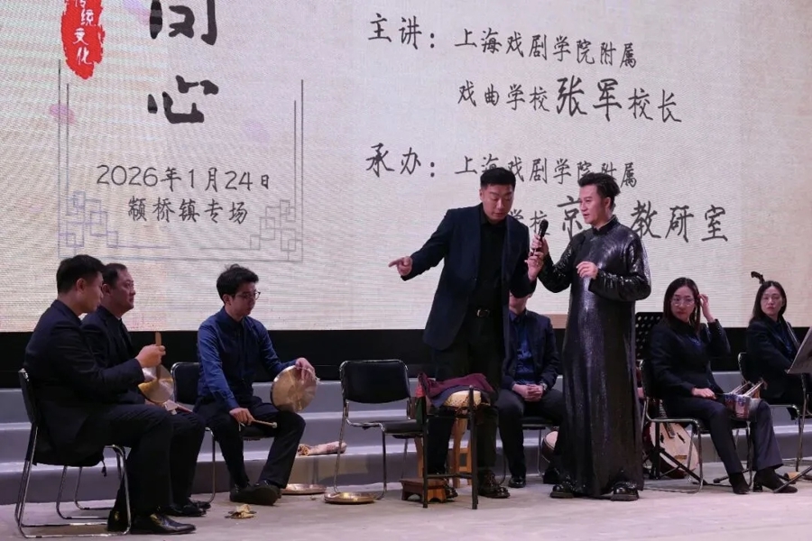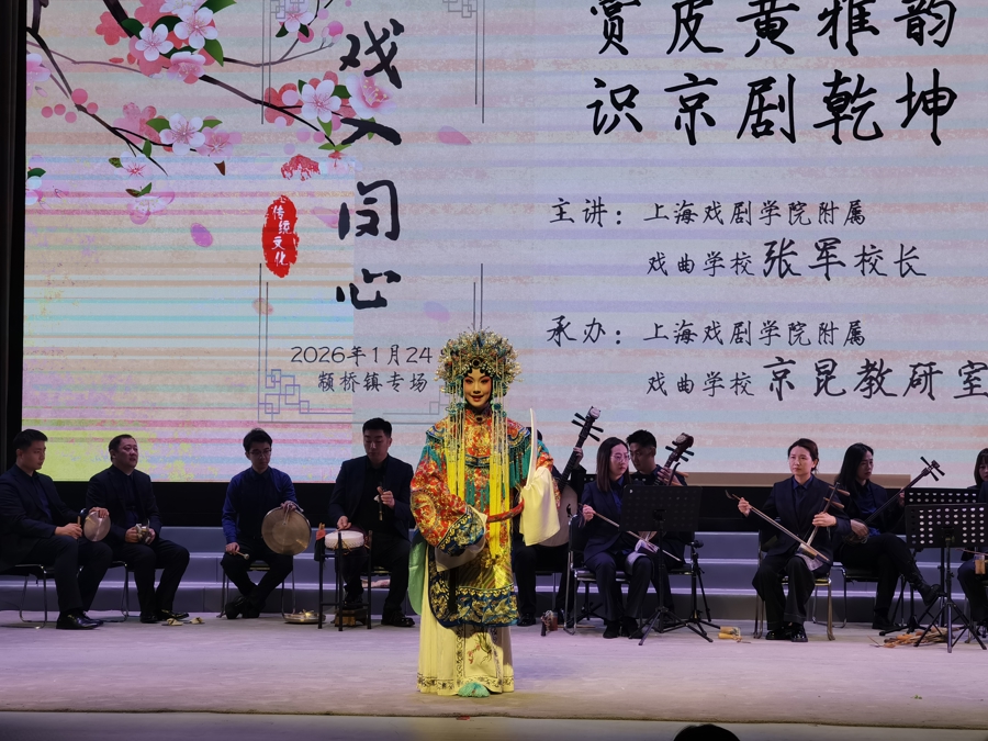 “昔日有个三大贤……”1月24日下午,闵行区颛桥镇文体中心剧场内,一段字正腔圆的京剧老生唱腔刚落,掌声如潮水般涌起。有趣的是,掌声过后,一段从容的解说响起:“大家刚才听到的是京剧传统名剧《珠帘寨》的经典唱段……”