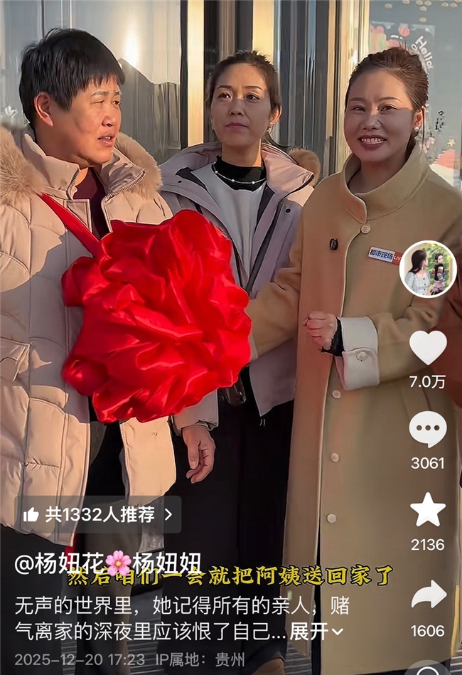 2024年11月,杨妞花匡助一位山东聋哑大姨找到家