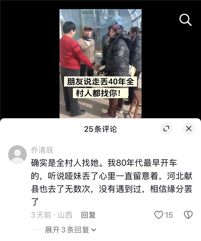 颉巧芳寻亲奏效后,同村东谈主在驳斥区敷陈当年的情况